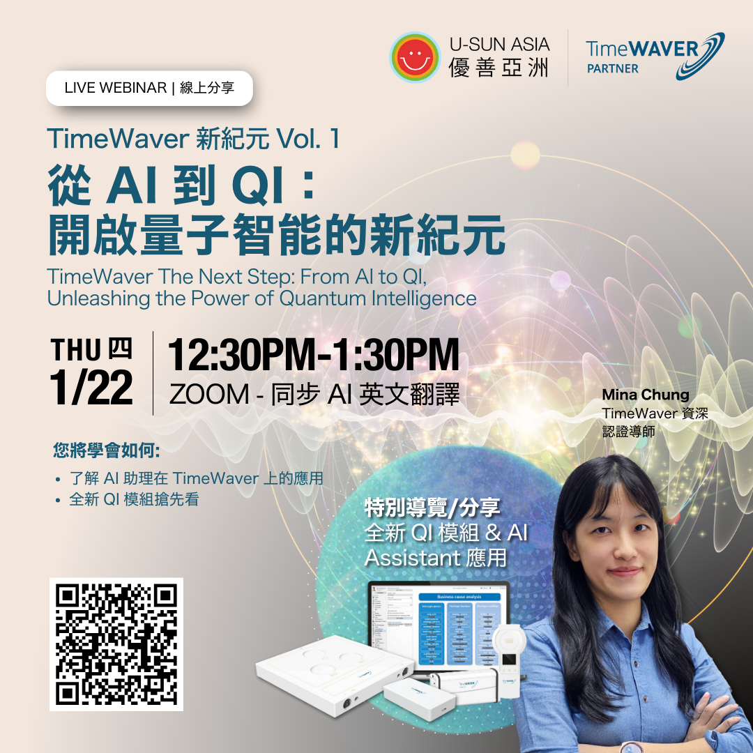 在這次全新的線上分享會中,我們將帶領您見證 TimeWaver 最尖端的技術突破:AI Assistant (智能副駕駛) 與 QI Module (量子智能模組) 。這不僅僅是軟體的升級,更是將人工智能的 「精準、快速與高效」,與信息場分析的 「深度洞察」 完美融合 。